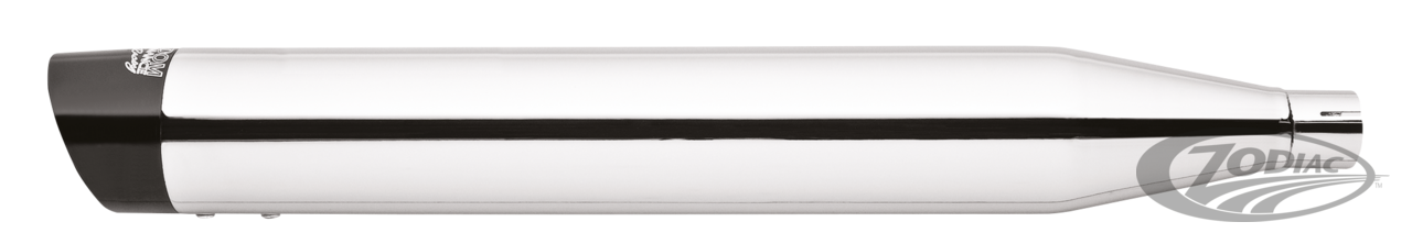 FEATURES & BENEFITS •Mufflers that fit stock headers •Choice of distinctive styling billet end tips in either Chrome or Black finish •Race version exhausts have removable baffles with acoustic packing for deep rich tone, optional quiet baffles available •Complete with mounting hardware and brackets •Easy installation using stock mounting brackets