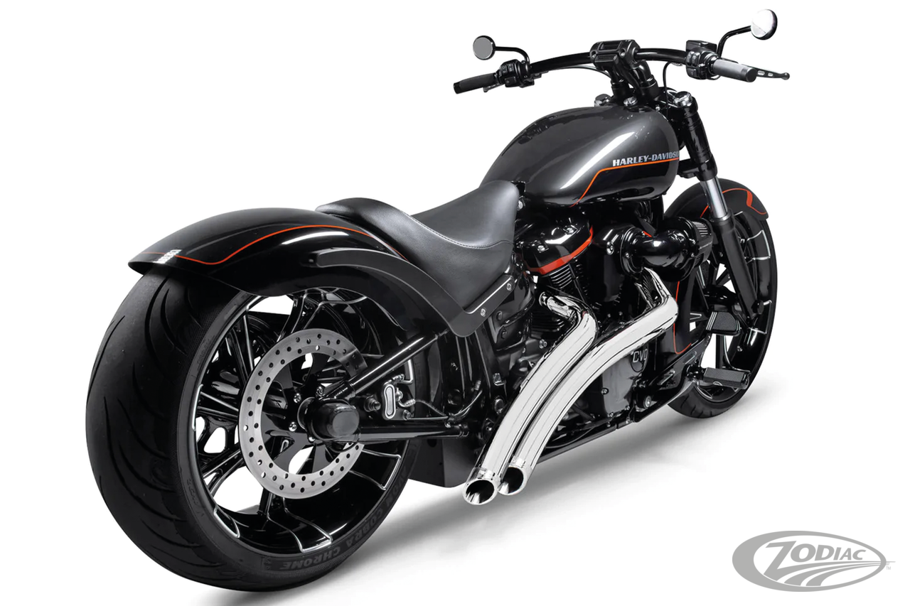 Fits 2008-2011 FXCW & FXCWC Rocker, 2009 FXSTSSE CVO Springer and 2014-2017 FXSB, FXSBSE & FXSE Breakout, All chrome with Slash Cut tips