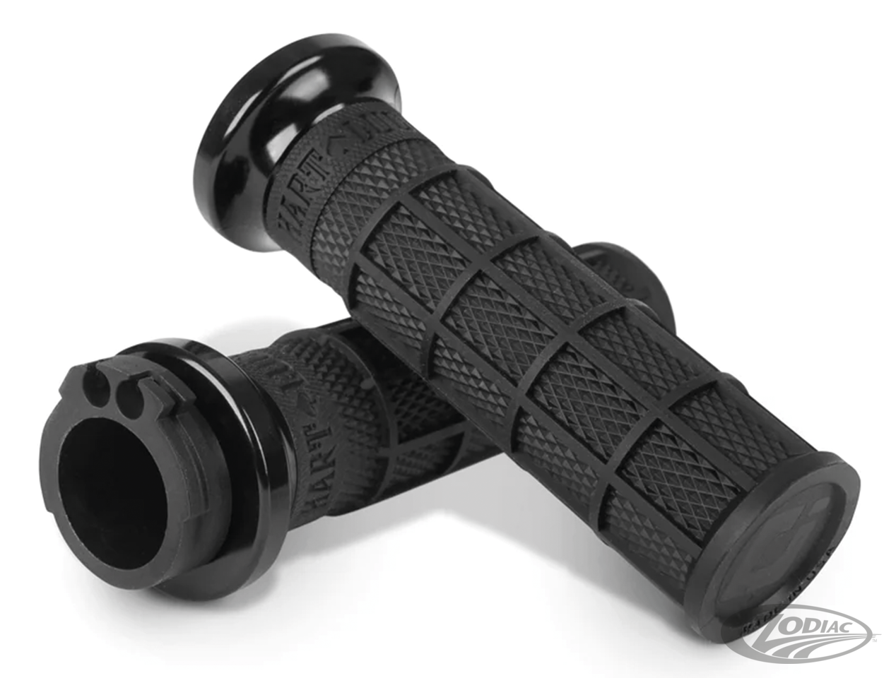 Fits all models with cable throttle and handlebars that are 1" diameter at the controls, All black ODI Hart-Luck Lock-On full waffle grips, pair