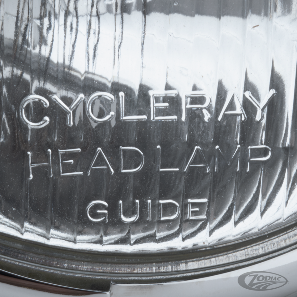 Restoration quality replica 6 Volt Springer headlights with Cycle Ray script in the housing and light unit for 1935-1952 45CI Solo, 1935-1954 Servi-Car and 1935-1948 Big Twin.