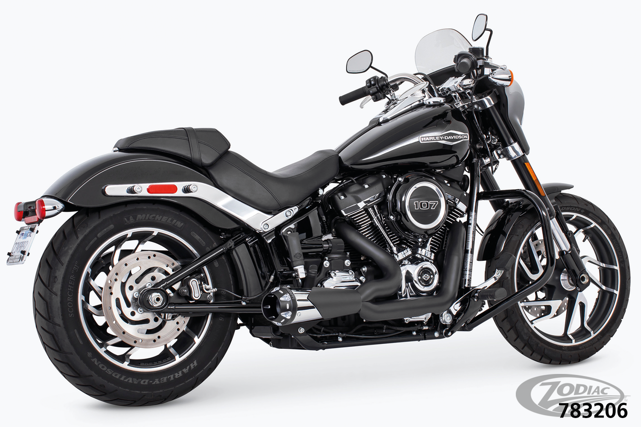 Fits 2018 to present SoftailRequires adapters when installed on FLHC & FLHCS Heritage, FLI Hydra-Glide Revival, FLSB Sport Glide and FXLRST Low Rider ST models with saddlebag supportsTo mount on FLFB & FLFBS Fat Boy, FXBR & FXBRS Breakout or FXDR(S) the passenger peg relocation kit must be ordered separately Note: All 2021 and later European models (Euro 5) require eliminators ZPN 744444 for the rear O2 sensor and digital tuning with Diag4Bike or similar to disable related CEL (Check Engine Light) and DTC's (Digital Trouble Code), Black system with chrome muffler and black American Outlaw end cap