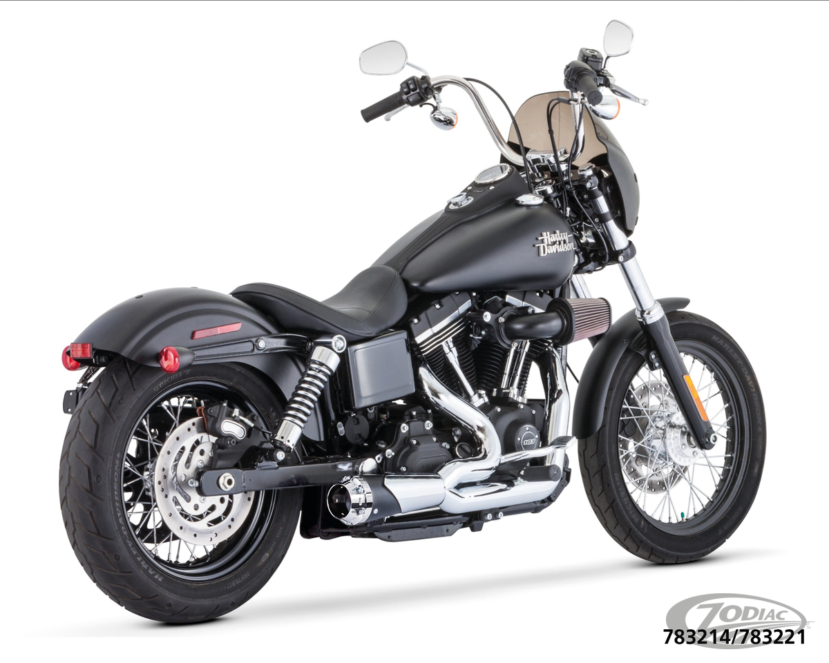 FEATURES & BENEFITS •Triple stepped headers 1 3/4" to 1 7/8" to 2" for increases of 15-18 HP and 13-15 foot lbs. of torque •Mufflers have removable baffles with a deep, rich and throaty sound, optional quiet baffles available •System equals 5 steps throughout for extreme power gains •System reduces heat concentration by 30% •Boasting full-coverage one-piece (220°) blue-proof heatshields (available in chrome or ceramic black) •Customizable with a show chrome, sculpted black or pitch black tip •Includes O2 sensor ports, plugs and all mounting hardware •Engineered for maximum power! •Made in USA