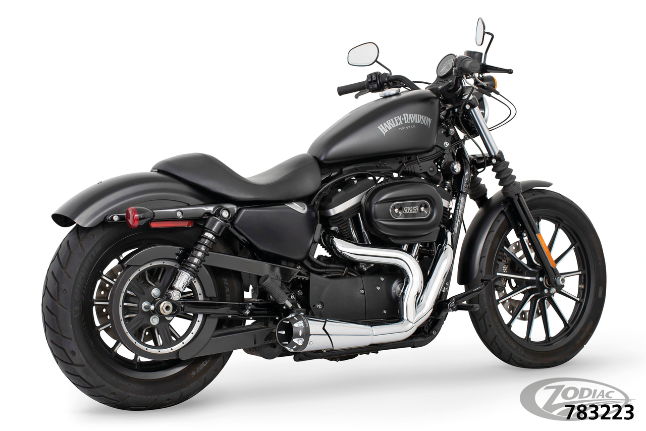Fits 2004-2022 XL Sportster, Chrome with black sculpted American Outlaw end cap