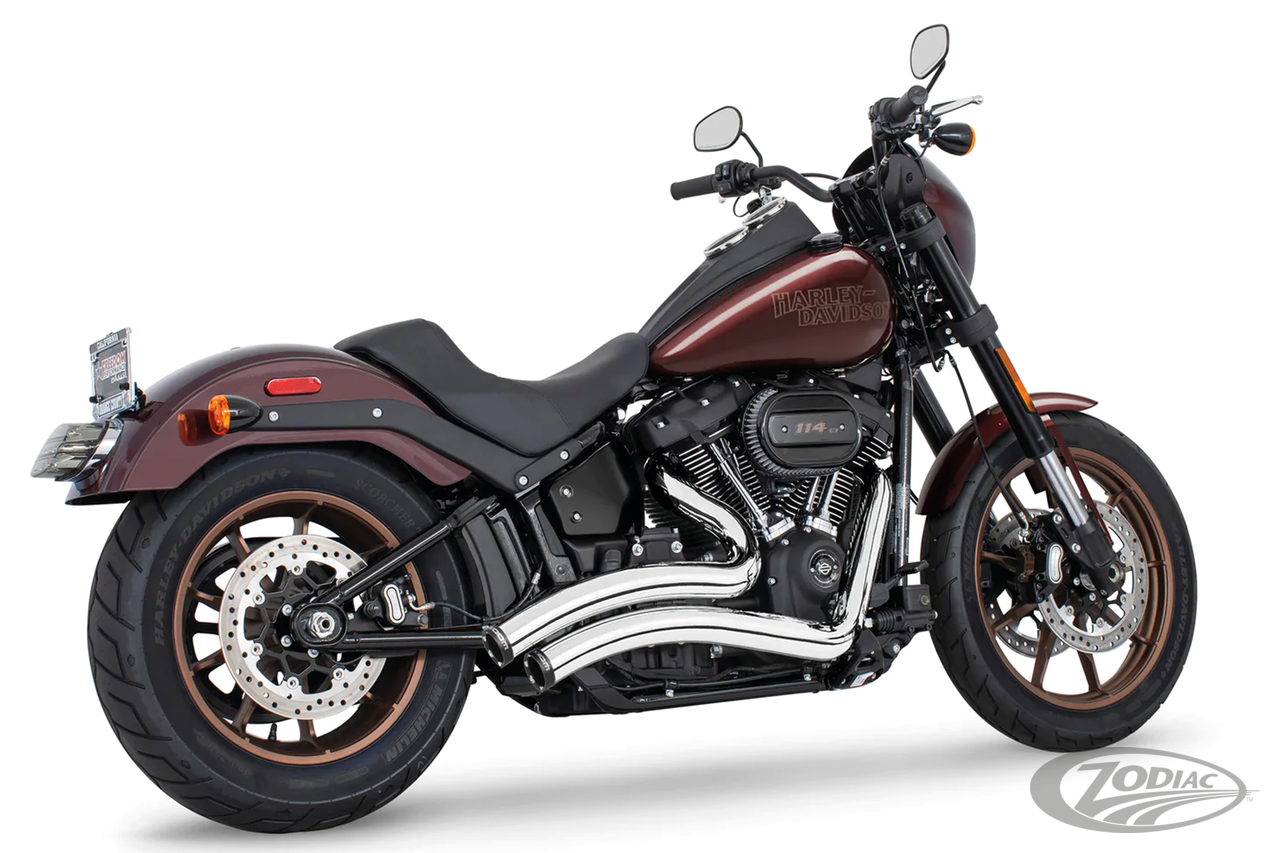 2018 to present Milwaukee Eight SoftailRequires adapters when installed on FLHC & FLHCS Heritage, FLI Hydra-Glide Revival, FLSB Sport Glide and FXLRST Low Rider ST models with saddlebag supportsTo mount on FLFB & FLFBS Fat Boy, FXBR & FXBRS Breakout or FXDR(S) the passenger peg relocation kit must be ordered separately Note: All 2021 and later European models (Euro 5) require eliminators ZPN 744444 for the rear O2 sensor and digital tuning with Diag4Bike or similar to disable related CEL (Check Engine Light) and DTC's (Digital Trouble Code), Chrome with black sculpted straight Star tips