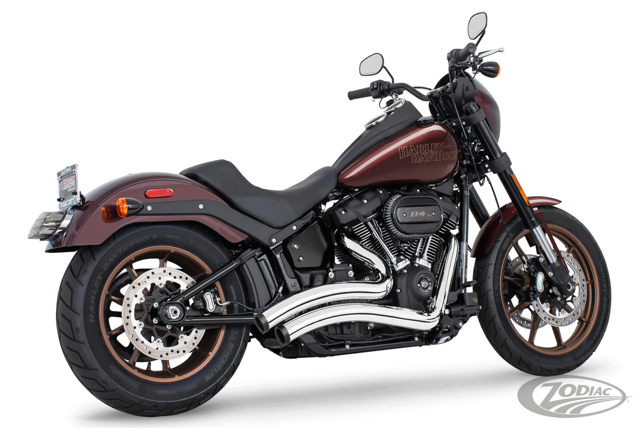 2018 to present Milwaukee Eight SoftailRequires adapters when installed on FLHC & FLHCS Heritage, FLI Hydra-Glide Revival, FLSB Sport Glide and FXLRST Low Rider ST models with saddlebag supportsTo mount on FLFB & FLFBS Fat Boy, FXBR & FXBRS Breakout or FXDR(S) the passenger peg relocation kit must be ordered separately Note: All 2021 and later European models (Euro 5) require eliminators ZPN 744444 for the rear O2 sensor and digital tuning with Diag4Bike or similar to disable related CEL (Check Engine Light) and DTC's (Digital Trouble Code), Chrome with black straight Star tips