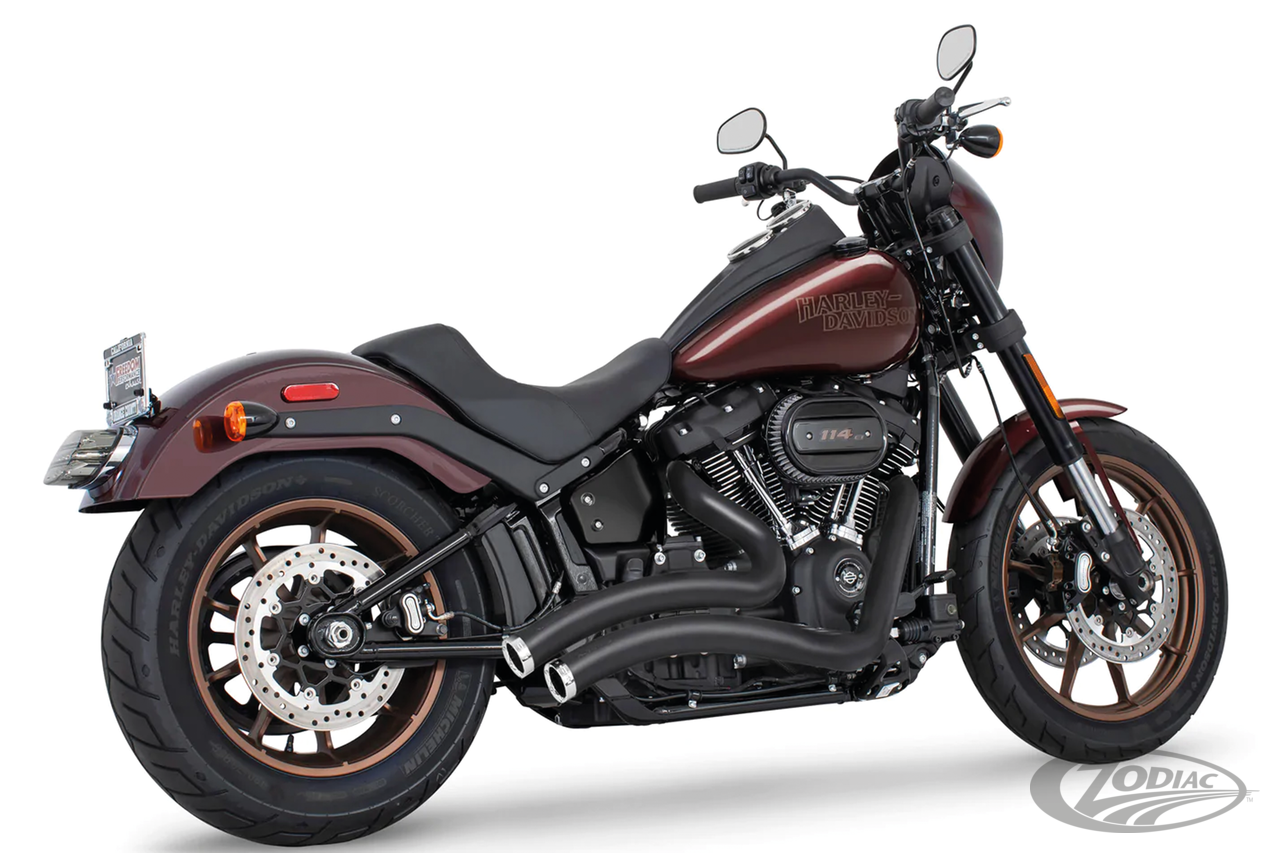 2018 to present Milwaukee Eight SoftailRequires adapters when installed on FLHC & FLHCS Heritage, FLI Hydra-Glide Revival, FLSB Sport Glide and FXLRST Low Rider ST models with saddlebag supportsTo mount on FLFB & FLFBS Fat Boy, FXBR & FXBRS Breakout or FXDR(S) the passenger peg relocation kit must be ordered separately Note: All 2021 and later European models (Euro 5) require eliminators ZPN 744444 for the rear O2 sensor and digital tuning with Diag4Bike or similar to disable related CEL (Check Engine Light) and DTC's (Digital Trouble Code), Black with chrome straight Star tips
