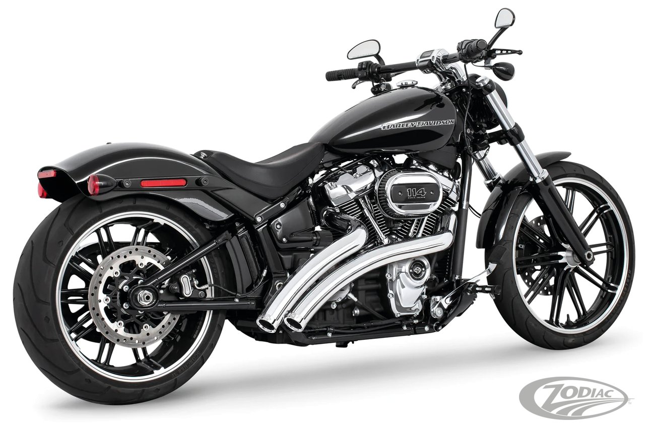 Fits 2018 to present SoftailRequires adapters when installed on FLHC & FLHCS Heritage, FLI Hydra-Glide Revival, FLSB Sport Glide and FXLRST Low Rider ST models with saddlebag supportsTo mount on FLFB & FLFBS Fat Boy, FXBR & FXBRS Breakout or FXDR(S) the passenger peg relocation kit must be ordered separatelyNote: All 2021 and later European models (Euro 5) require eliminators ZPN 744444 for the rear O2 sensor and digital tuning with Diag4Bike or similar to disable related CEL (Check Engine Light) and DTC's (Digital Trouble Code), All chrome with straight Star tips