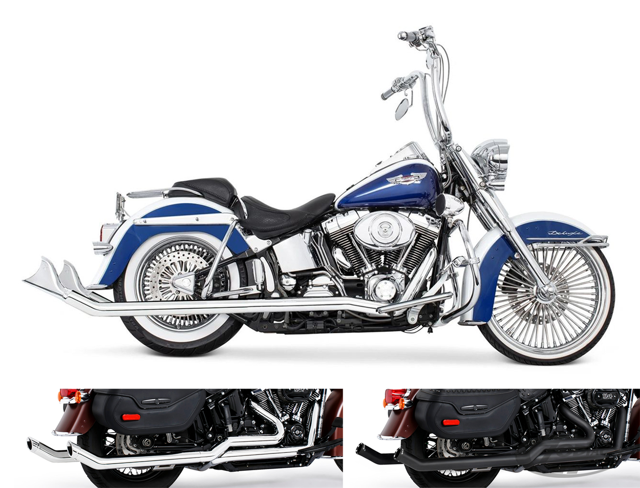 FEATURES & BENEFITS •Triple stepped headers for anti-reversion with full range torque and optimal horsepower •True Dual headers with 2 1/2" O.D. full-length 1-piece 220º heavy duty 16 gauge heat shields •Complete with mounting hardware and brackets •Hot Rod sound •All 2021 and later European models (Euro 5) require eliminators ZPN 744444 for the rear O2 sensor and digital tuning with Diag4Bike or similar to disable related CEL (Check Engine Light) and DTC's (Digital Trouble Code)
