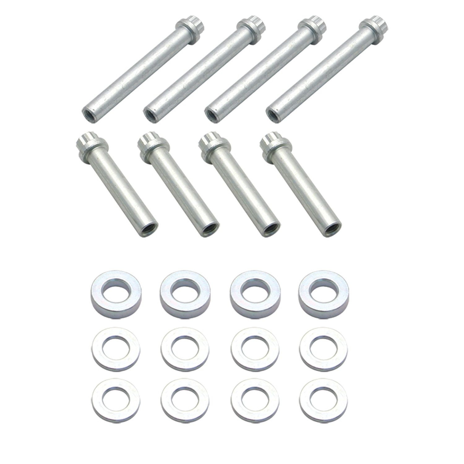 Complete cylinder head bolt kits with four short and four long 12-point head bolts and eight washers. Washers are not used from stock on late models, but S&S late model head bolt kits include these for added strength.