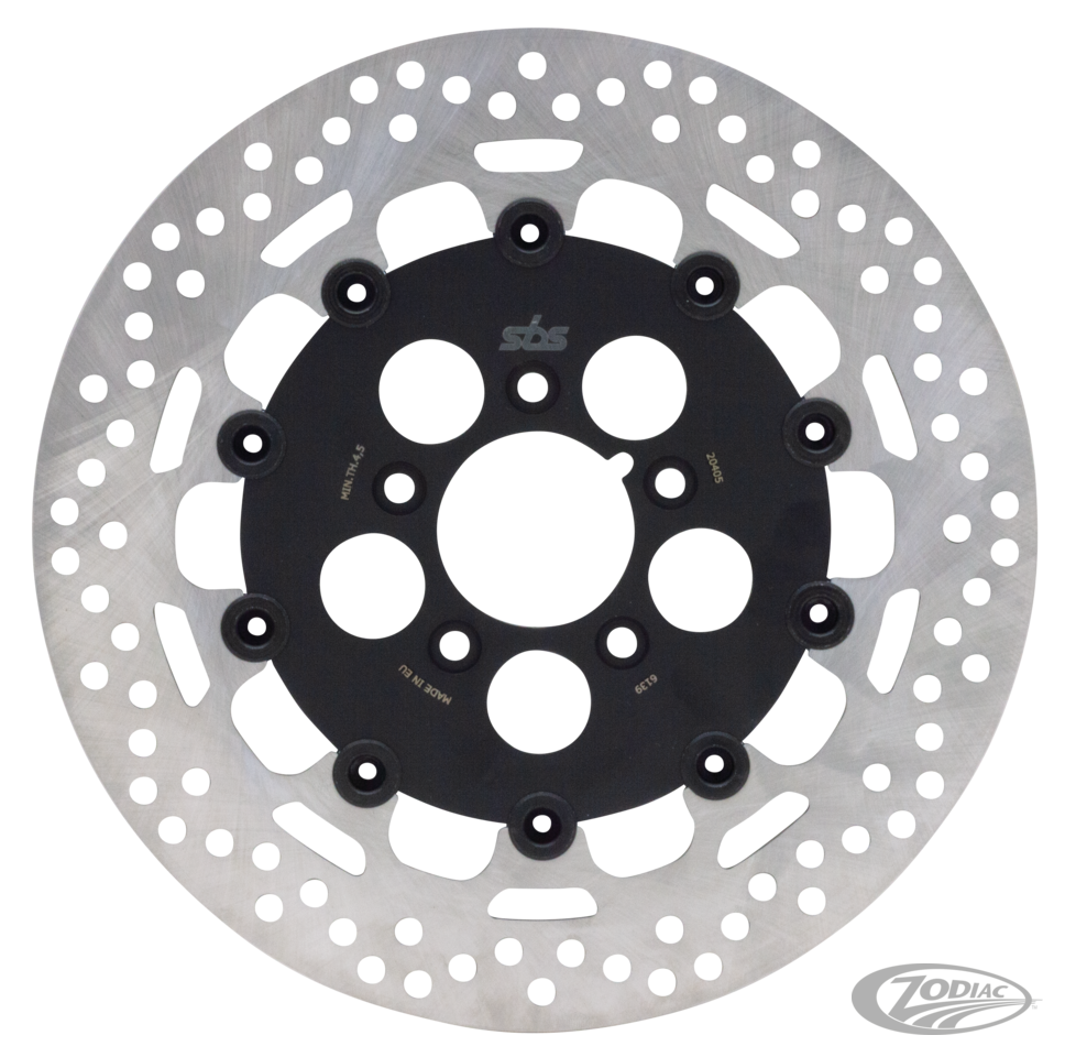 Floating brake discs help the brake pads contact equally on both sides. This gives an improvement of the braking response and increases heat dissipation. Discs are made from high quality stainless steel with a high carbon content. Center hubs are heat treated alloy. As with all disc brake rotors it is strongly recommended to install them with new brake pads.