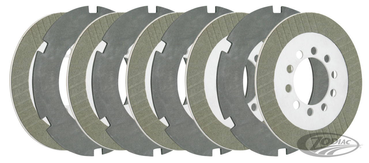 Fits Big Twin 1941-1984, run wet or dry, Set of five friction plates with 6061 T6 aluminum core (OEM 37850-68)