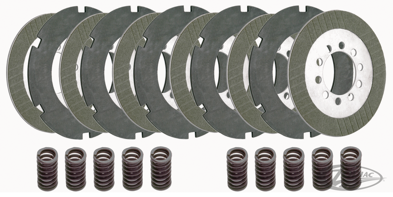 Fits Big Twin 1941-1984, run wet or dry, High Performance Extra-Plate clutch with 20% more surface area than stock, includes six friction plates with 6061 T6 aluminum core, five steel drive plates and ten zero crush springs