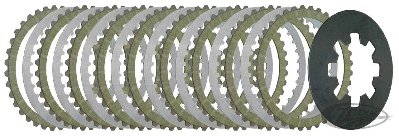 Fits Big Twin 1990-1997, XL Sportster 1991-2022 & Buell 1995-2002, High Performance kit with 15% increased clutch surface. Set of nine friction plates with tempered steel cores, eight steel drive plates and 15% stronger-than-stock Heavy-Duty diaphragm clutch spring. Install without stock riveted double separator plate