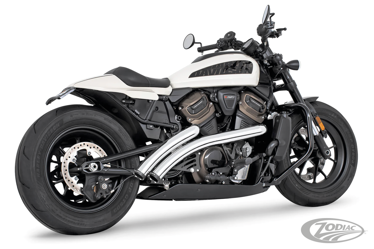 Fits 2021 to present RH1250S Sportster S, Chrome with black sculpted Straight Cut Star end caps