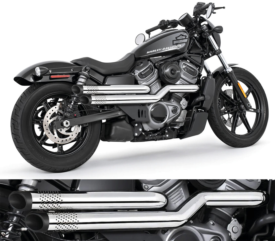 Fits Nightster RH975 & RH975S 2022 to present, Chrome system with all black Slash Cut end caps