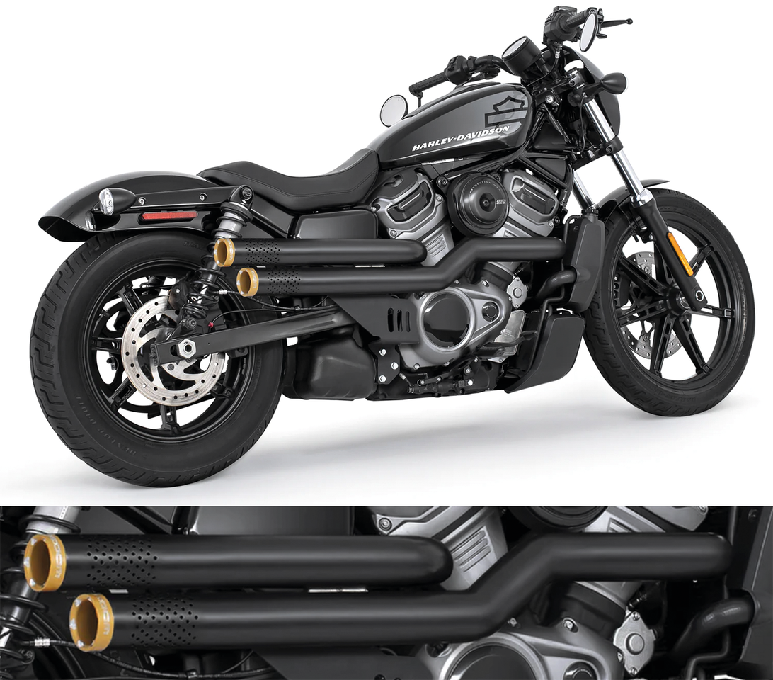 Fits Nightster RH975 & RH975S 2022 to present, Black system with sculpted gold Star end caps