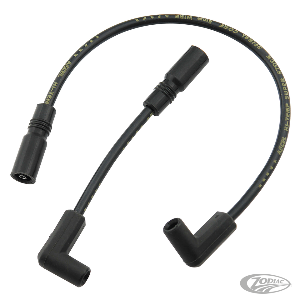 Accel's 8.0 S/S wire sets feature the same great features as the 300+ Series, such as an extra thick 8mm silicone jacket and silicon insulation. These features eliminate electrical "leakage" or RFI interference, that interrupts electronic ignitions and especially the Delphi fuel injection systems found on many Twin Cam. Accel claims that their S/S Wire can deliver up to 5 times more peak energy than "Screaming Eagle" wire sets, even at high temperatures over 500°F (260°C). The ultra-strong Aramid core, together with the fiberglass braiding provide resistance to vibration and "wire stretch", making them durable and reliable. The low 500 Ohms/ft. resistance Ferro-Spiral core material delivers maximum spark energy to the spark plugs, without diminishing or suppressing the spark energy. Compare that to the 2,500 Ohms/ft common in many other top-of-the-line wire sets and you know why the Accel S/S wire is what you need for getting the best performance out of your motorcycle. S/S Spark Plug Wires are available in custom fit sets that are pre-terminated and ready for quick and easy installation. Accel S/S Wire sets are recommended for use on both carbureted and fuel injected motorcycles.