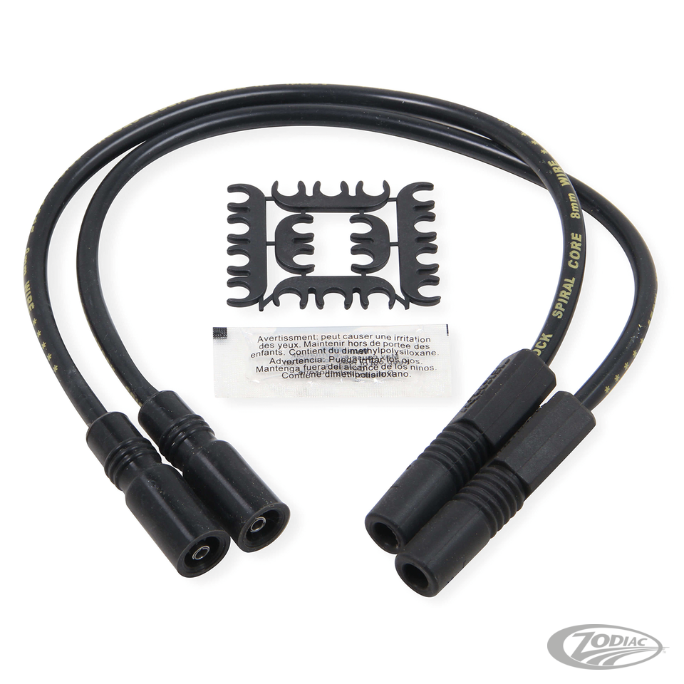 Accel's 8.0 S/S wire sets feature the same great features as the 300+ Series, such as an extra thick 8mm silicone jacket and silicon insulation. These features eliminate electrical "leakage" or RFI interference, that interrupts electronic ignitions and especially the Delphi fuel injection systems found on many Twin Cam. Accel claims that their S/S Wire can deliver up to 5 times more peak energy than "Screaming Eagle" wire sets, even at high temperatures over 500°F (260°C). The ultra-strong Aramid core, together with the fiberglass braiding provide resistance to vibration and "wire stretch", making them durable and reliable. The low 500 Ohms/ft. resistance Ferro-Spiral core material delivers maximum spark energy to the spark plugs, without diminishing or suppressing the spark energy. Compare that to the 2,500 Ohms/ft common in many other top-of-the-line wire sets and you know why the Accel S/S wire is what you need for getting the best performance out of your motorcycle. S/S Spark Plug Wires are available in custom fit sets that are pre-terminated and ready for quick and easy installation. Accel S/S Wire sets are recommended for use on both carbureted and fuel injected motorcycles.