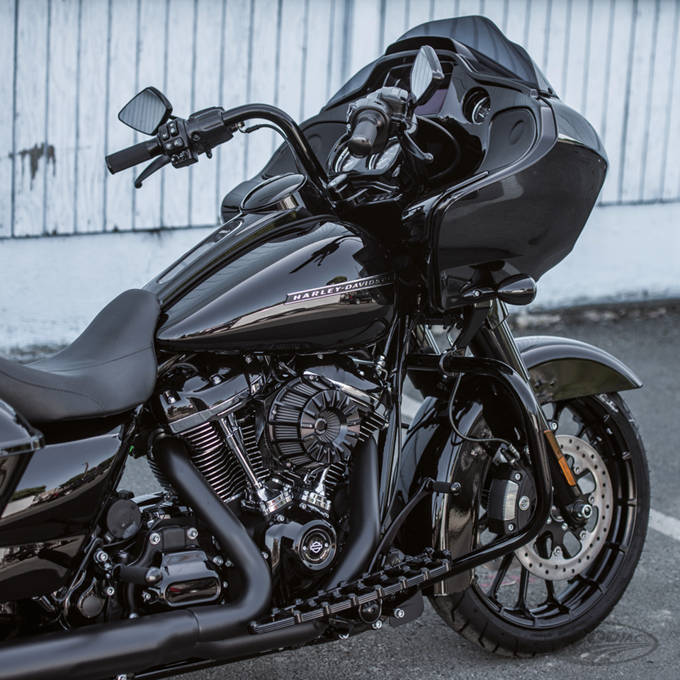 The Ness MX floorboards feature a detailed cut-through design with integrated rubber inserts for excellent foot traction. CNC machined from a solid block of billet aluminum, with extended length for added foot room and comfort. Driver floorboards are 18" (45.8cm) long and 5 3/4" (14.6cm) wide. Passenger floorboards are 8" (20.3cm) long and 4 1/4" (10.8cm) wide.