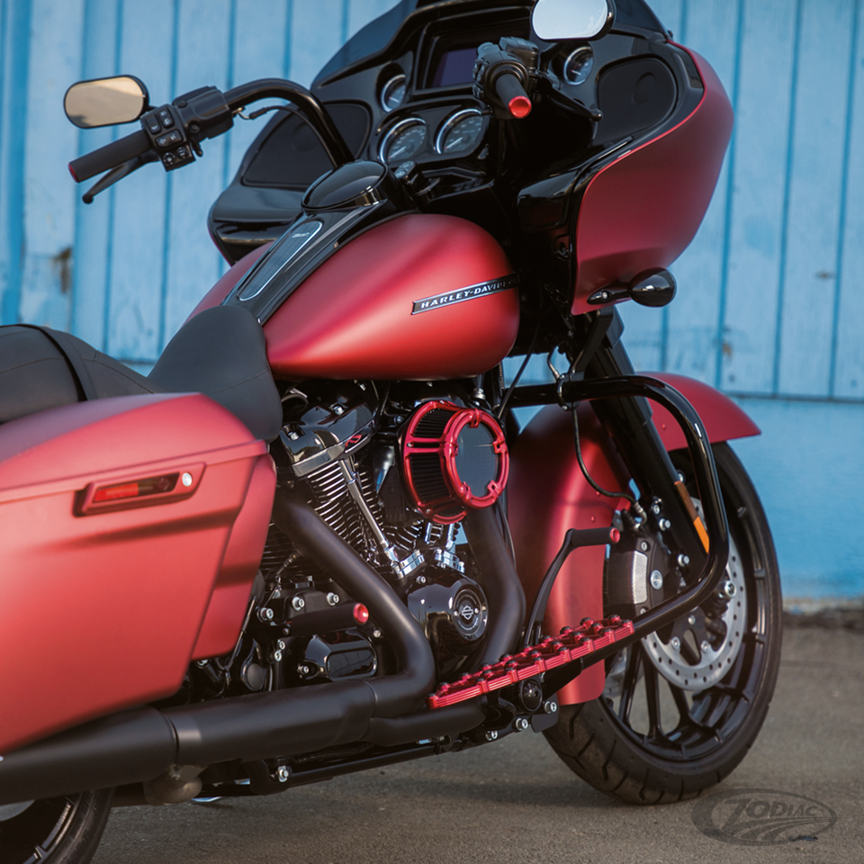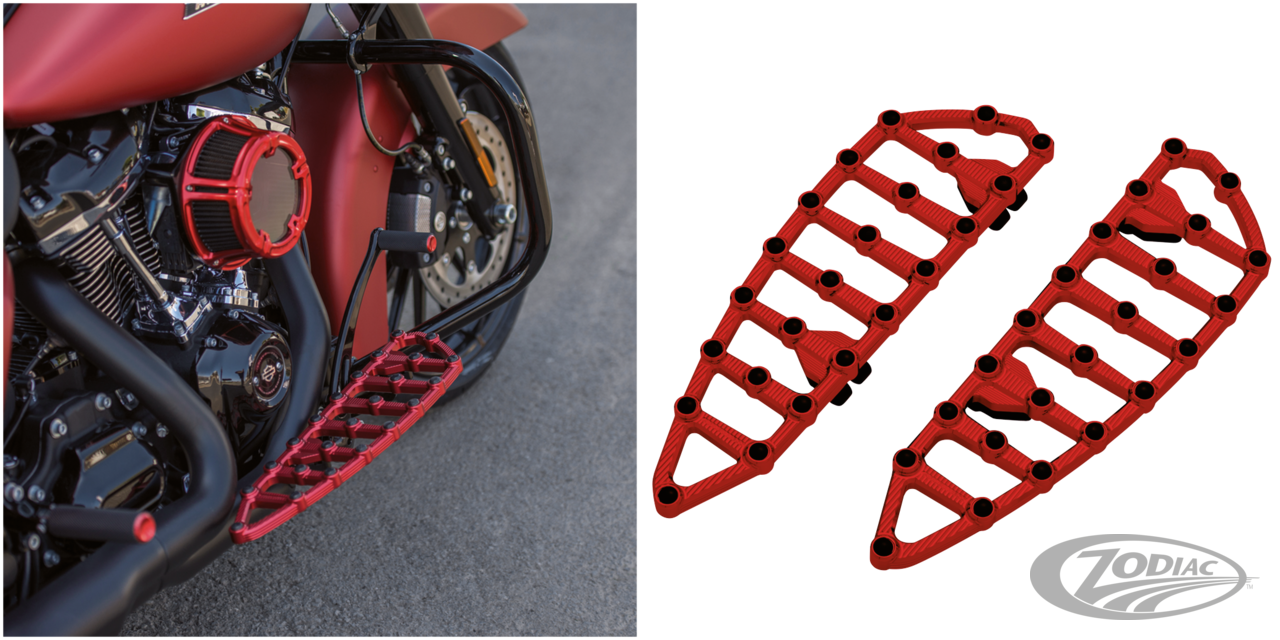 Driver floorboards fit: • 1980 to present Touring (except FLHTCUL, FLHTKL & FLHTCUL-TC) • 2009 to present Trike• 1986-2017 all FL Softail: Cross Bones, Deluxe, Fatboy, Heritage, Nostalgia, Slim • 2012-2016 FLD Switchback, Red anodized finish, pair