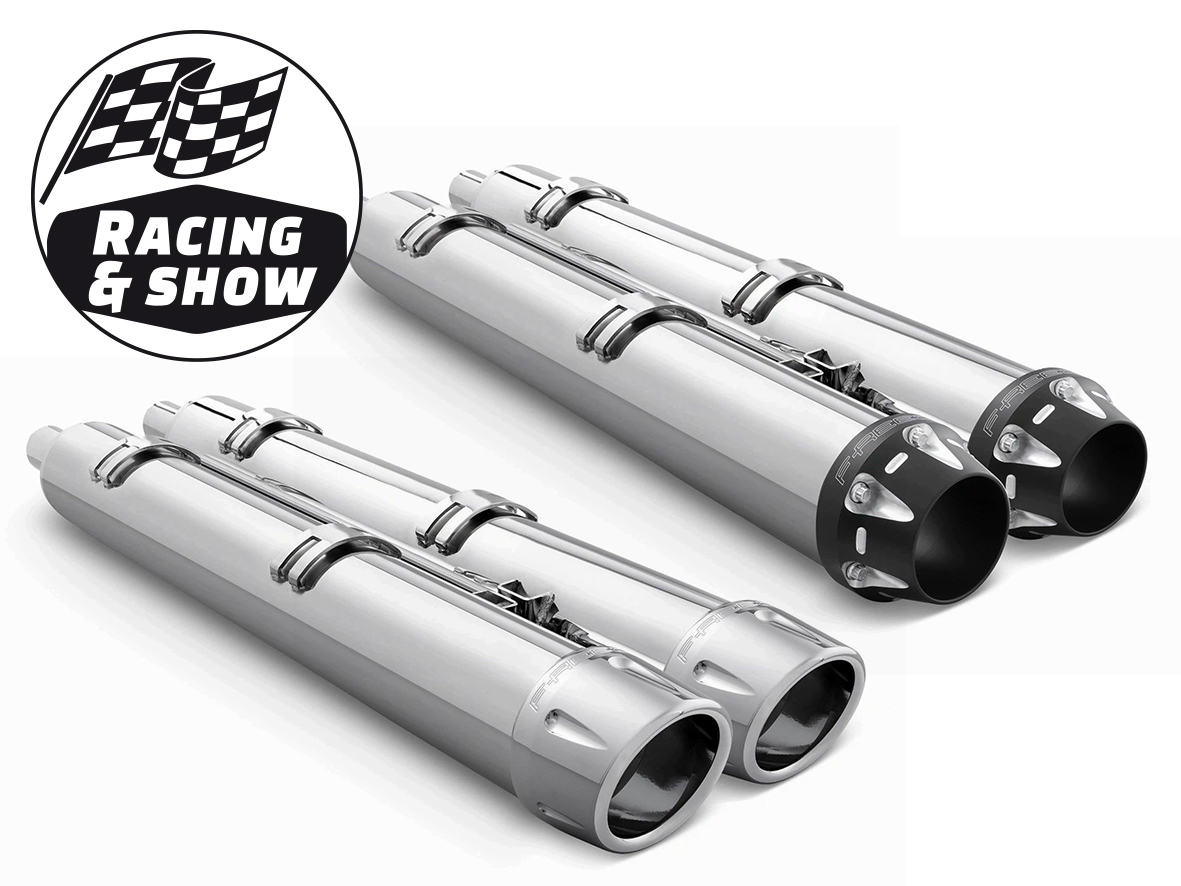 FEATURES & BENEFITS •Slip-on mufflers have a simple bolt-on installation on the stock headers •Combine with a True Dual header set for unparalleled performance •Feature removable baffles for unmatched sound and performance •Quiet baffles are separately available •Chief models: Classic, Dark Horse, Premium & Vintage •Chieftain models: Classic, Dark Horse, Elite, Limited, Premium & Standard •Roadmaster models: Classic, Dark Horse, Elite, Premium & Standard •Springfield models: Dark Horse, Limited & Standard •Challenger models: Base, Dark Horse, Limited & Standard •Mufflers and Quiet baffles are sold in pairs