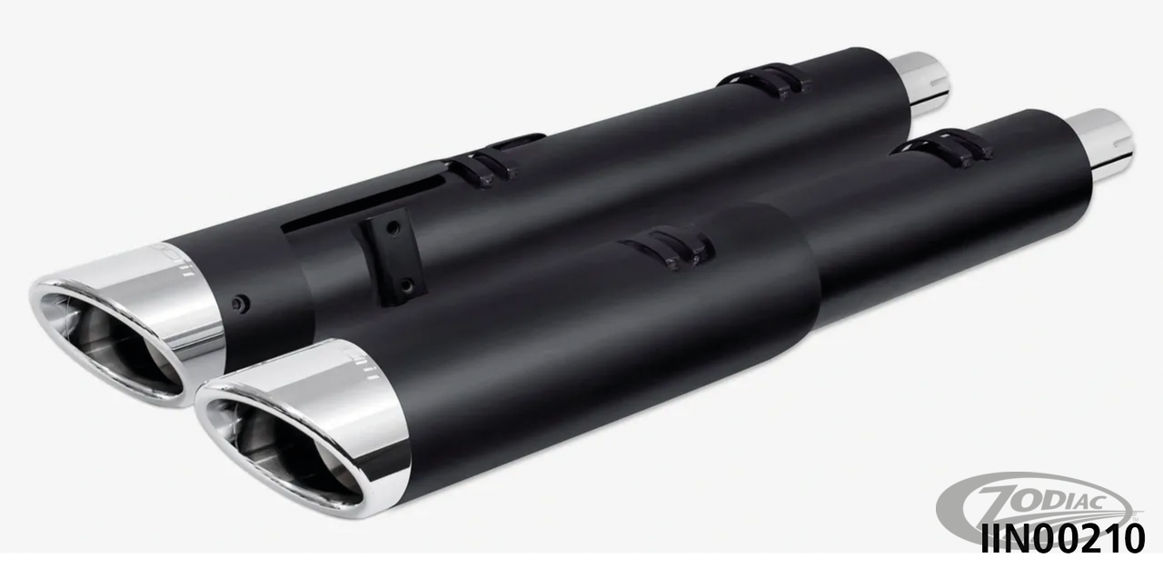 Fits Chieftain & Roadmaster 2014 to present, Springfield 2016 to present, Challenger 2020 to present and Pursuit 2022 to present, Black with chrome Slash Cut end caps