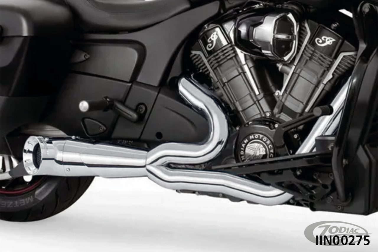 FEATURES & BENEFITS •Designed specifically for the Touring enthusiast who prefers an extended rear fender and saddlebag kit without cut-outs for the stock exhaust, or for those who prefer a 'Shorty' style exhaust •Hot Rod styling •Anti-reversion, full range torque and optimal horsepower •Full length 2 1/2" outside diameter 220º wrap around blue-proof heat shields •Complete with mounting hardware and brackets •Includes M18-1.25 O2 sensor bungs •Mufflers have removable baffles with Hot Rod sound •Optional quiet baffle ZPN737000 available separately •Lower "hard bag" saddlebag support brackets available separately