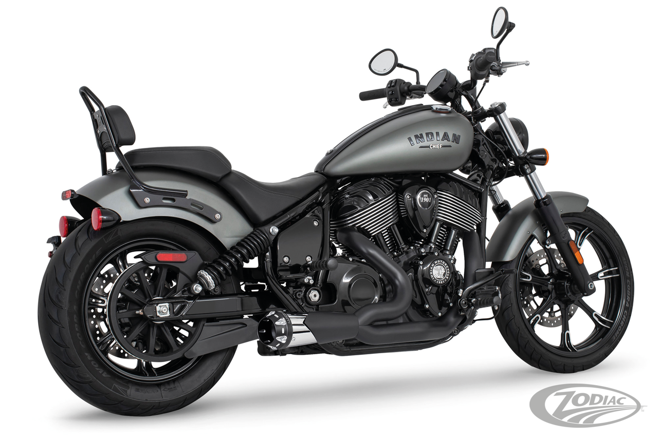 Fits 2022 to present Indian Chief Bobber, Chief Classic, Chief Dark Horse, Chief Standard, Chief Vintage and Super Chief, Chrome Combat Shorty 2-into-1 with black muffler and black end American Outlaw cap