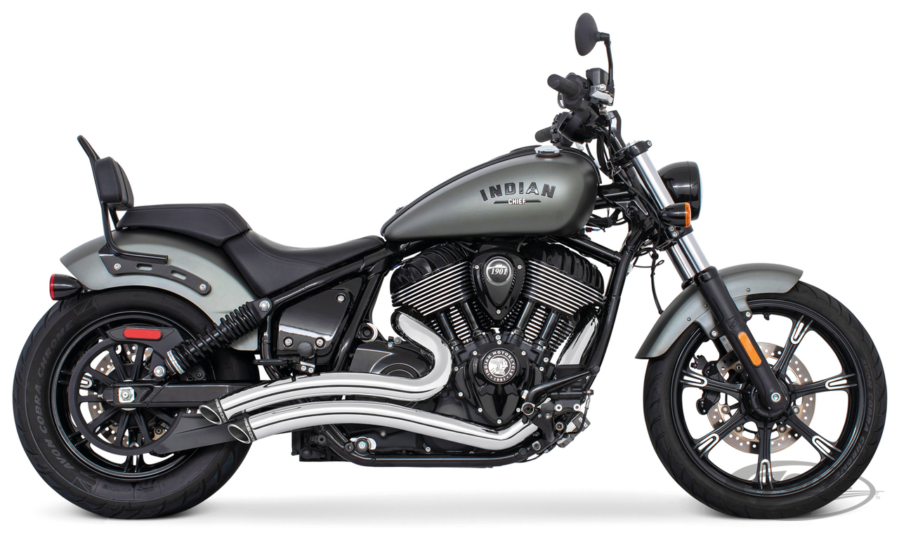 Fits all 2022 to present Indian Chief and Super Chief, Chrome with Slash Cut black sculpted end caps