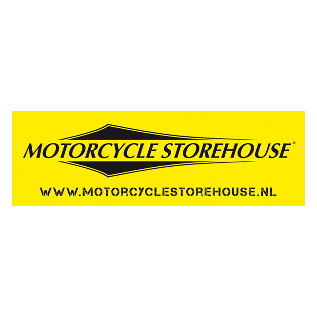 Motorcycle storehouse, logo sticker. SmallYellow; Black print; 5;5cm wide x 17cm high