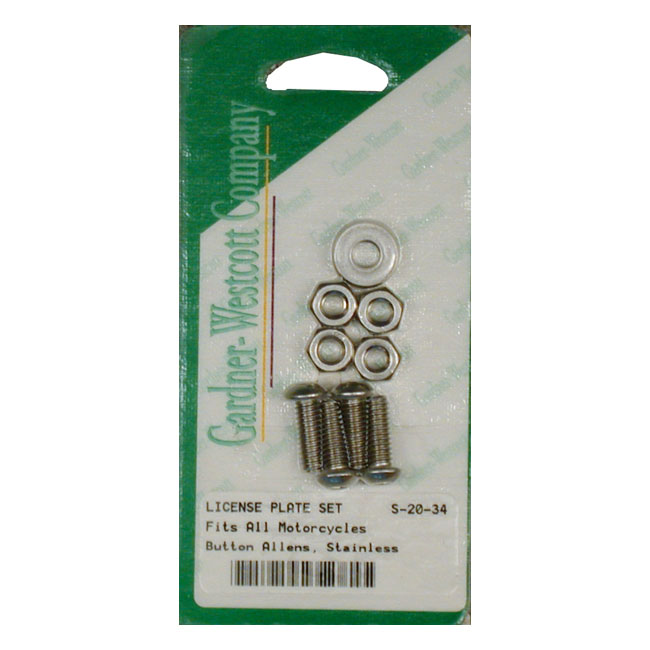 License plate to bracket mount kit. Chrome. HexIncl. 4 Allen head bolts with hex nuts and washers.