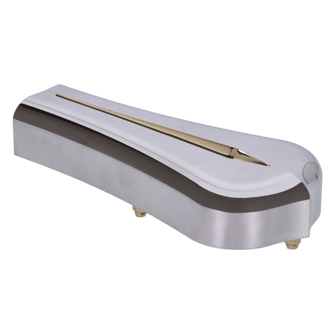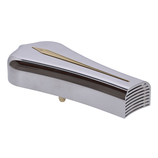 Polished aluminum housing with a central brass fin. Approx. dimensions: 220mm high x 100mm wide. Note: Not recommended for regular street use since this air intake housing is not equipped with a air filter element and no filter element is available.
