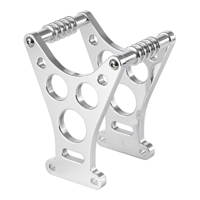 Polished aluminum. For 39mm narrow glide forks. The classic tweek bar with a stunning new radical retro look. Nothing comes close to Italian Design and giving up on the front fender is peanuts when absorbing the clean CNC machined mechanical works beauty of this fork brace.
