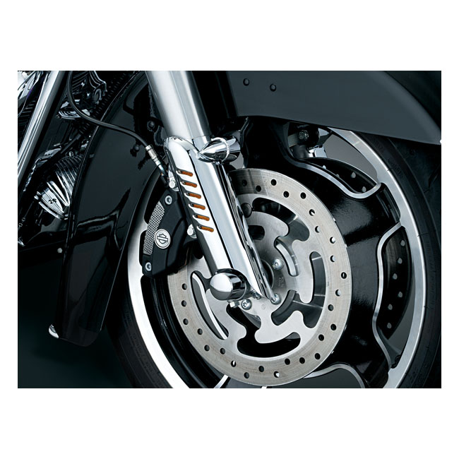 Kuryakyn, Lower leg deflector shields. ChromeChrome plated accents for the lower fork sliders. Includes lower slider covers & fender boss cover kit.