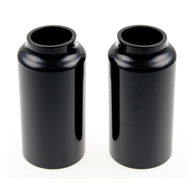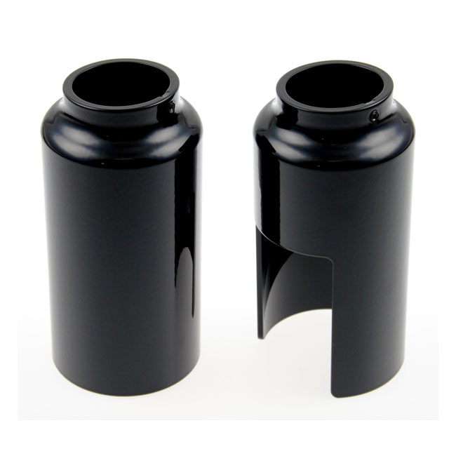 Gloss black powder coated CNC machined aluminum covers. Covers the chrome plated fork tubes below the triple trees. Mounts with set-screws which automatically center the covers correctly around the fork tubes. Compatible with stock & custom fenders. Includes required hardware.