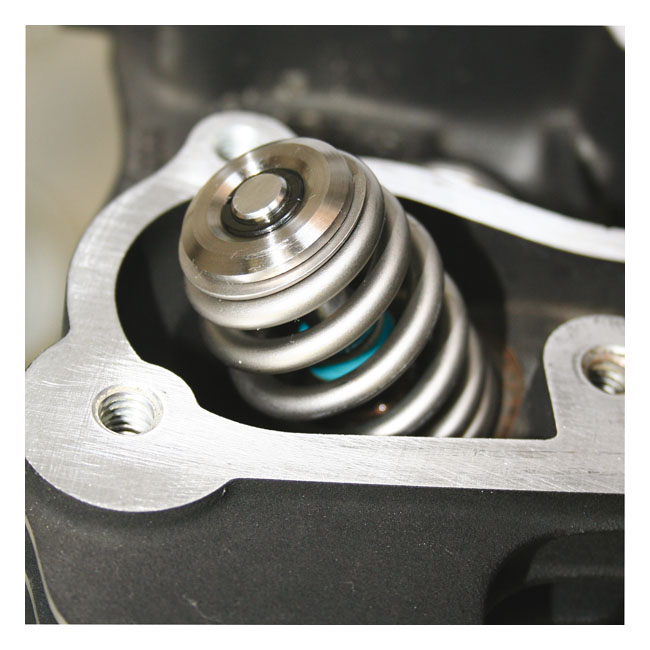 Installed pressure 198lbs@1.685"; open pressure & height 375lbs@1.150"; coil bind@1.100". Direct replacement; installs without machining or rocker box clearancing. High tensile chrome silicone wire with a shot-peened heat treatment and a super NexTex® finish. Kits include springs; lower collars; titanium upper collars; shims; keys and Viton® seals.