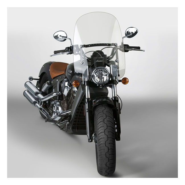 National Cycles 'Spartan®' leads the way in high value... Install or remove in less than 5 seconds; with no tools! Quantum® hardcoated polycarbonate quick release windshield with a stealth black powdercoated; stainless steel frame. A model-specific mount kit is required (sold separately). Dimensions: - Headlight cutout to top of screen: 18.5" (47.0cm). - Width across back at widest point: 18.0" (45.7cm).
