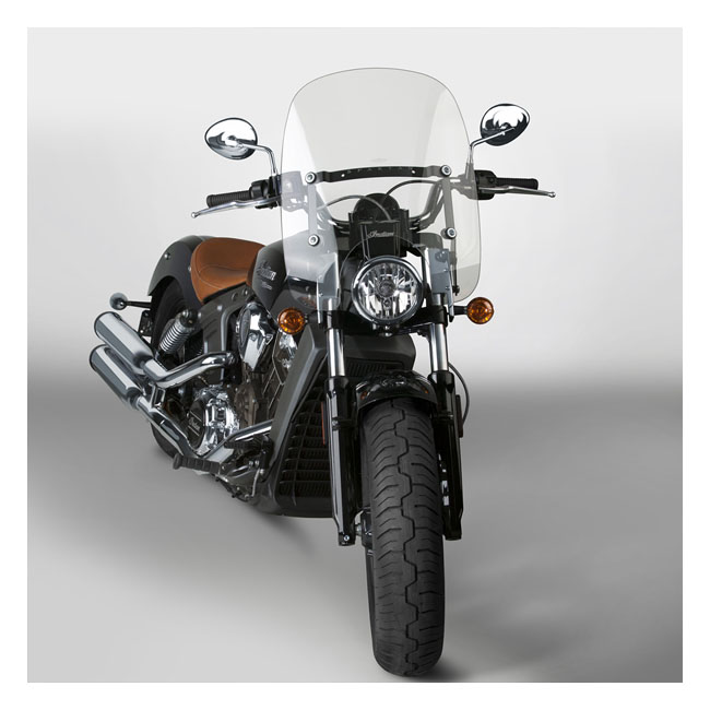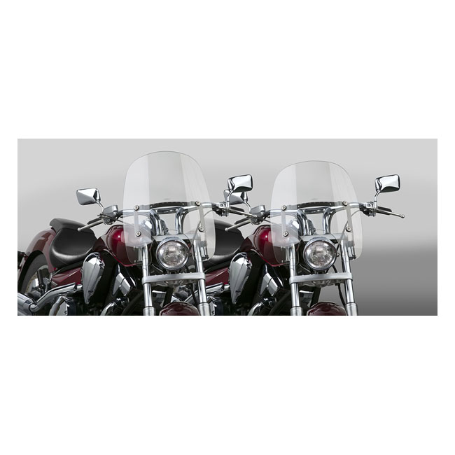 National Cycles 'Spartan®' leads the way in high value... Install or remove in less than 5 seconds; with no tools! Quantum® hardcoated polycarbonate quick release windshield with a stealth black powdercoated; stainless steel frame. A model-specific mount kit is required (sold separately). Dimensions: - Headlight cutout to top of screen: 16.25" (41.3cm). - Width across back at widest point: 18.0" (45.7cm).