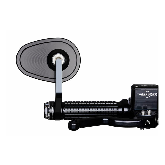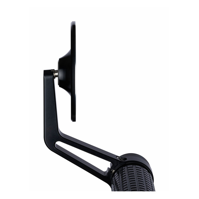 ECE approved; aluminum; Oval; 114mm wide x 80mm high. Angled stem 110mm. Motogadget mo.view mirrors are glassless. CNC machined from aluminum and finish-anodized; but a regular glass lens is not used. Instead the patented mirror surface is convex cut directly from the aluminum. This is done with ultra-precision diamond tools using a special ´flycutting´ procedure after which it is made corrosion and scratch resistant by a special vacuum plasma coating process. Available in regular and handlebar-end mirrors. Left & right side compatible; allows above or below bar end installation and mounts directly onto or into 22mm or 1" diameter handlebars. Body thickness approx. 4.2mm without ball head. Note: Installation compatible with Motogadget bar end turn signals; the mo-grip and the push button controls mo-switch and mo-switch mini. Note: Mirror comes with handlebar clamp but optional bar-end adapters (575353 clamp-on or 575352 clamp-in) are available and sold separately.