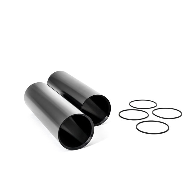Black anodized finish. Manufactured from billet aluminum with CNC machined precision. Covers the fork tubes between upper and lower triple tree Perfect for a visual update. Incl. 2x upper fork covers and 4 rubber o-rings.