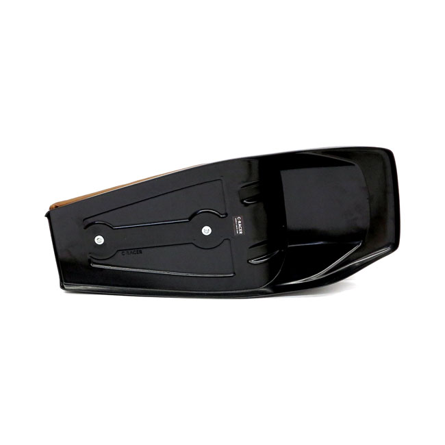 Dark brown synthetic leather upholstery. This universal flat track seat was inspired by the legendary Honda Bol d'Or; making it different but a classic in its own right. Consists of 4 parts; a seat cowl; the upholstery base with 2 mounting points (M6-Steel plus nuts) to allow easy installation. The vintage style number plates are bolt-on type. Made from unpainted black ABS plastic and comes with 20mm thick seat foam that is covered with a water repellent membrane below the synthetic leather upholstery. Note: Installation modifications may be required.