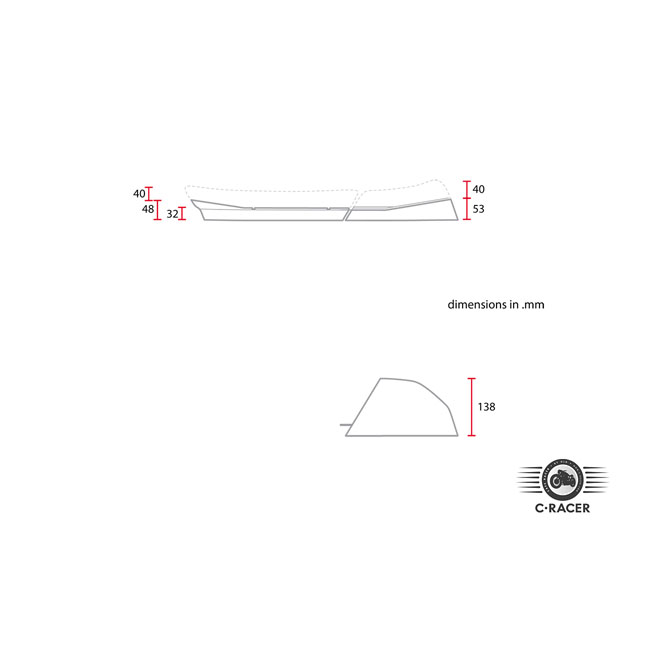 Black synthetic leather upholstery. A Jekyll & Hyde seat that converts from a solo to a fully functional two-up seat in seconds; without breaking a sweat. Great for an occasional passenger; at any moment. Consists of 4 parts; a seat base; seat cowl; 2x the upholstery base with 6 mounting points (M6-Steel plus nuts) to allow easy installation. Made from unpainted black ABS plastic and comes with 40mm thick seat foam that is covered with a water repellent membrane below the synthetic leather upholstery. Note: Installation modifications may be required.