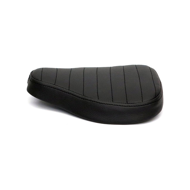 Black synthetic leather upholstery. Good for a bobber or many other custom builds that need a solo. Consists of 2 parts; a seat and a installation kit. The install kit is a mounting bracket and 2 springs; enabling you to install it directly to the frame or have a seat with classic spring suspension. The base is made from unpainted black ABS plastic and comes with 20mm thick seat foam that is covered with a water repellent membrane below the synthetic leather upholstery. Note: Installation modifications may be required.