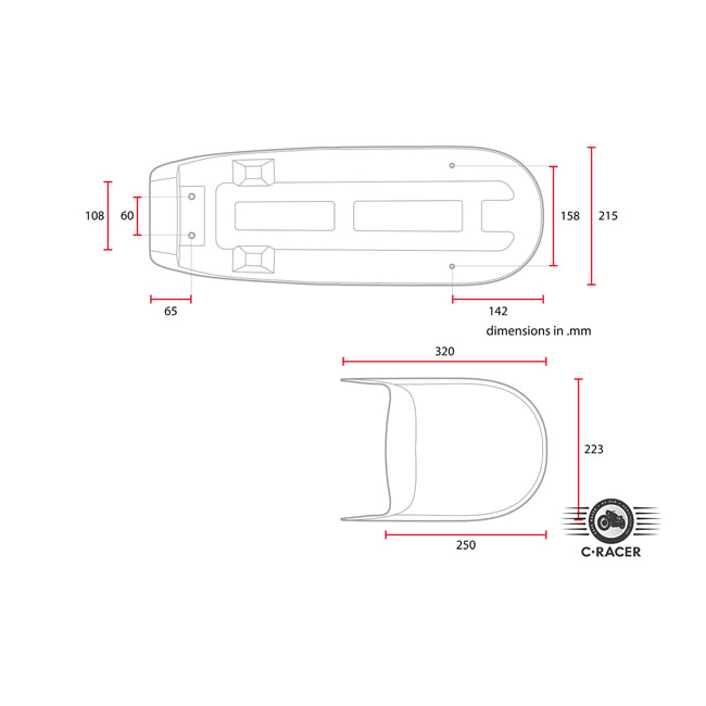 C-Racer CX500 Flat & Cowl seat blackCafe Racer/Scrambler seat; Black seat & unpainted black seat pan; seat foam 20 mm thick; synthetic leather; seat pan ABS plastic; incl frame cover