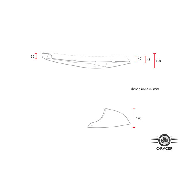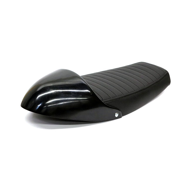 C-Racer SR400/500 Flat & Cowl seat blackCafe Racer/Scrambler seat; Black seat & unpainted black seat pan; seat foam 40 mm thick; synthetic leather; seat pan ABS plastic