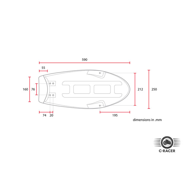 C-Racer SR400/500 Flat Cafe Racer/Scrambler seat blackCafe Racer/Scrambler seat; Black seat; seat foam 40 mm thick; synthetic leather; ABS plastic base