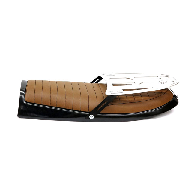 C-Racer BMW R100 Scrambler seat 02 dark brownScrambler seat with luggage rack; Dark brown seat & unpainted black seat pan; seat foam 40 mm thick; synthetic leather; seat pan ABS plastic