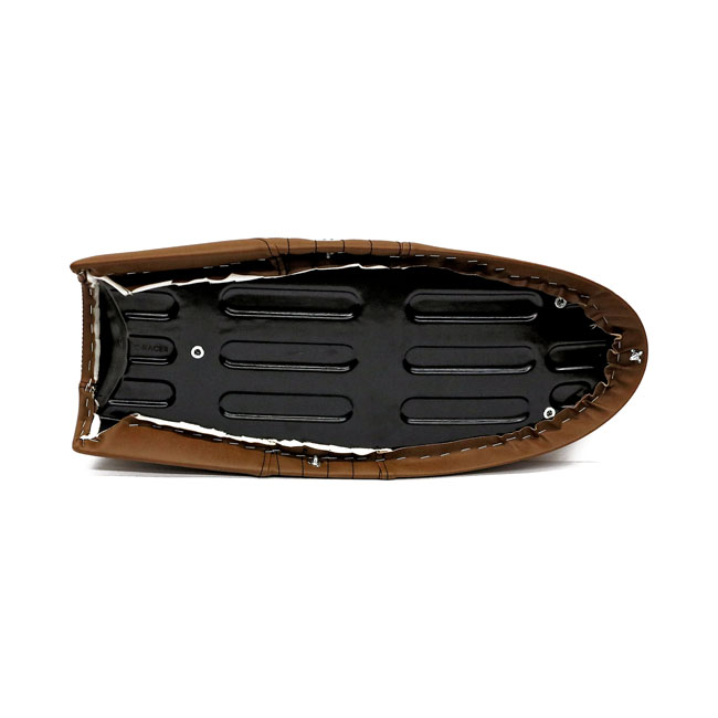 C-Racer BMW R100 Cafe Racer seat 03 dark brownCafe Racer seat; Dark brown seat & unpainted black seat pan; seat foam 40 mm thick; synthetic leather; seat pan ABS plastic