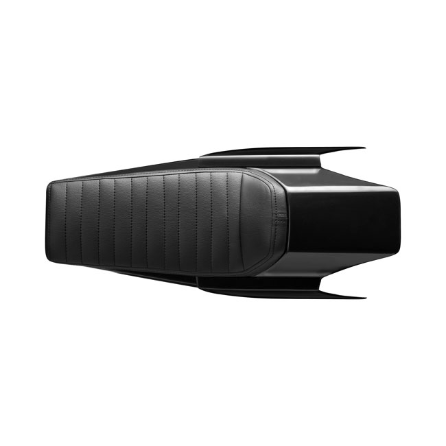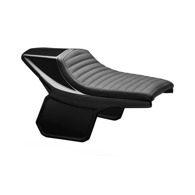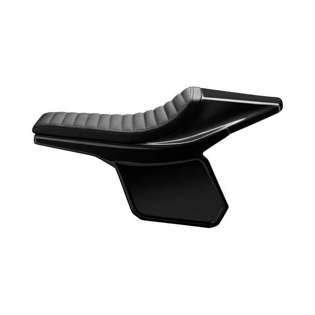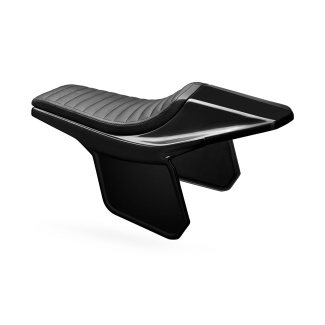 With black synthetic leather seat. This is a universal flat track kit for custom builds; made in collaboration with Wrenchmonkees. Manufactured from black unpainted ABS plastic. This kit includes a seat with a Flat Racer SCR4 seat; which consists of 4 parts; a seat cowl; the upholstery base with 2 mounting points (M6-Steel plus nuts) to allow easy installation and 2 adjustable side number plates. The seat comes with 20mm thick seat foam that is covered with a water repellent membrane below the synthetic leather upholstery. Also included is a front number plate and a set of style matching fork guards. Note: Installation modifications to be expected.