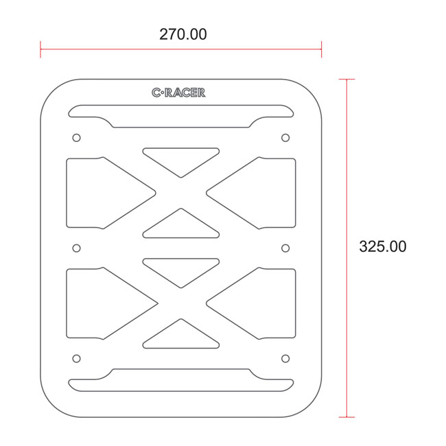 C-Racer Universal luggage rack No2Universal brushed aluminum luggage rack. With 6 mounting points. Black powder coated steel brackets for custom applications. Maximum load 5kg. Note: Installation modifications may be required.